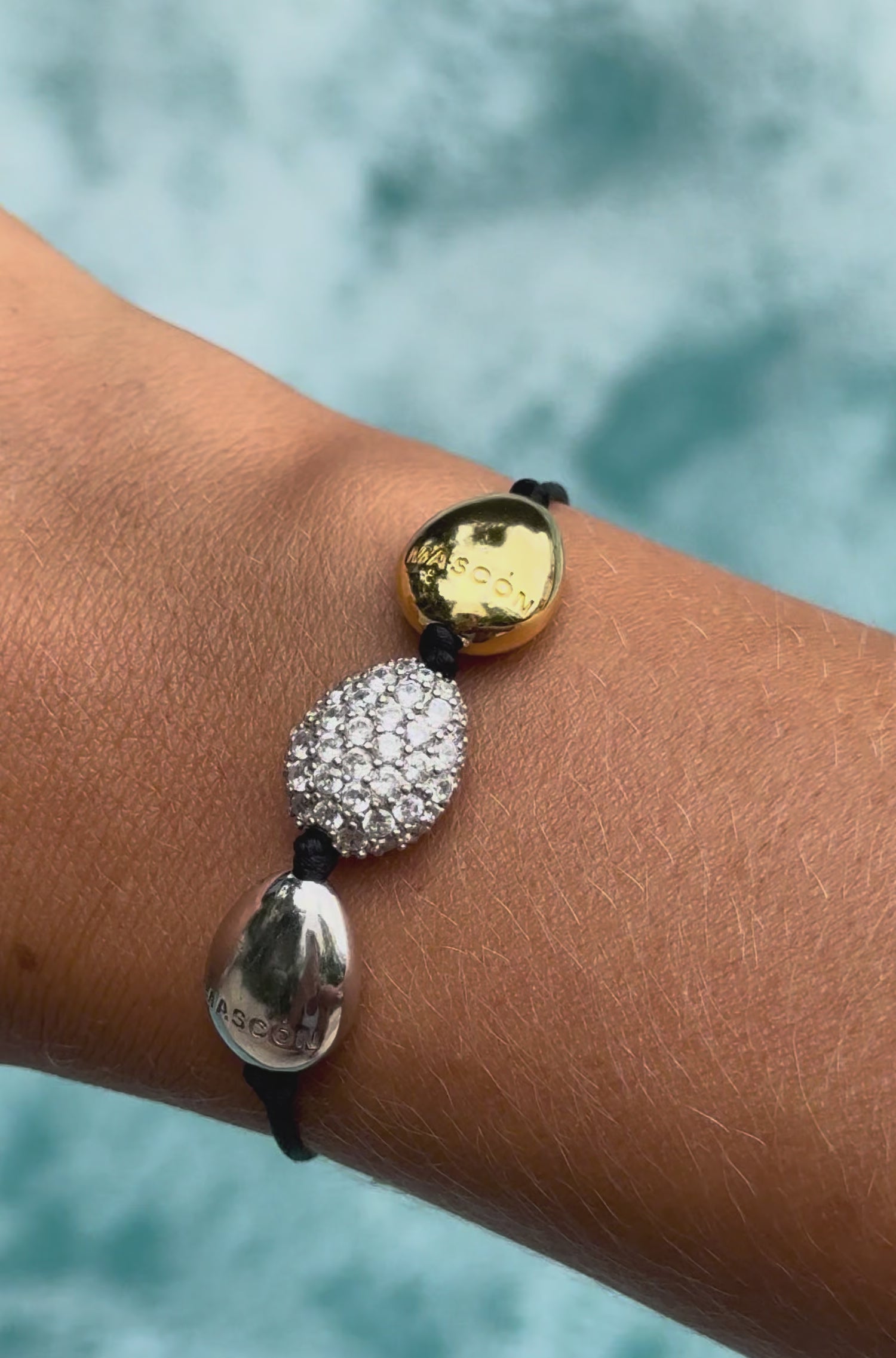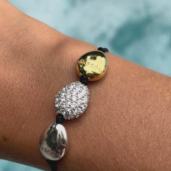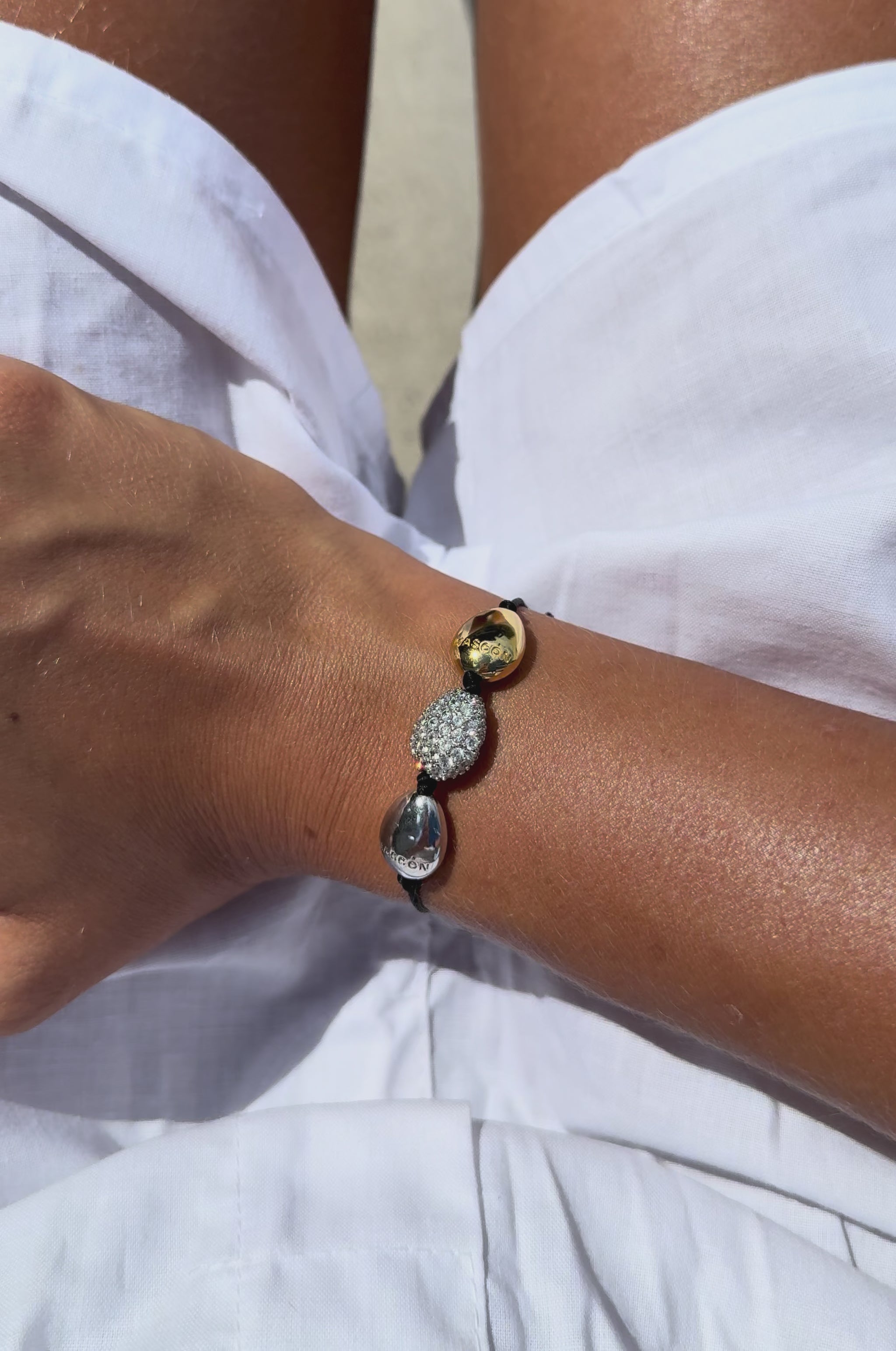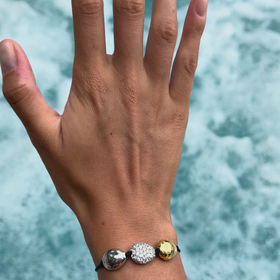 The bracelet is composed of three eggs, each one different